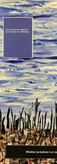 The applique method used to create this artwork, fragile in nature, has been executed using individually cut pieces of hand painted papers and placed to express jarred terrain (mankind), and an extensive sky (God's peace and presence). The rocky and desolate terrain has sharp edges, each piece is different in shape, colour and size. There is no differentiation when considered as one extensive piece, and yet the individual is clearly defined, considered and placed. The colourful terrain expresses struggle, loss, grief, turmoil and depletion.